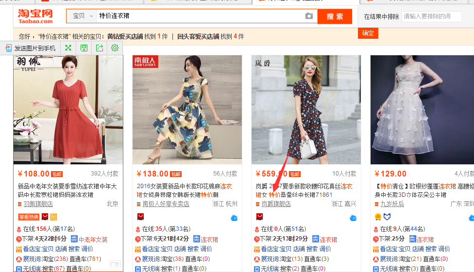 可能有些掌柜在搜索框搜索了一下,发现特价被描红了。这说明什么呢?说明了特价这个词是可以去使用的啊。然而接下来我要泼泼你的冷水了。接下来我们去看看他的竞争。