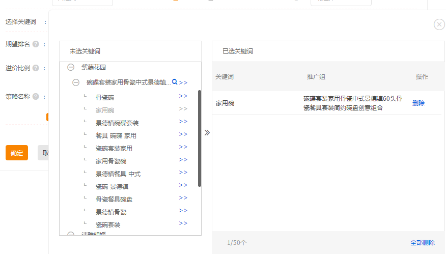 5)策略名称策略名称自己去设置,随便设置,自己知道就行不同策略的要求与可以设置的期望排名位如下表。